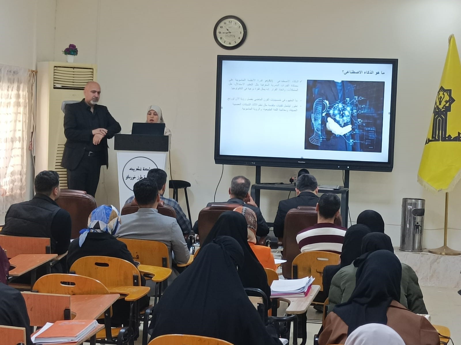 4 -2025/12/3. استعرض المحاضرون، وهم م.م. نجاح مدد وردي، وم.م. فرح صباح خلف، وم.م. كون آل قاسم عسكر، الأهمية الحيوية للتحول الرقمي والذكاء الاصطناعي في تشكيل رؤية واضحة لمستقبل بيئة الأعمال والاحتياجات الوظيفية القادمة.