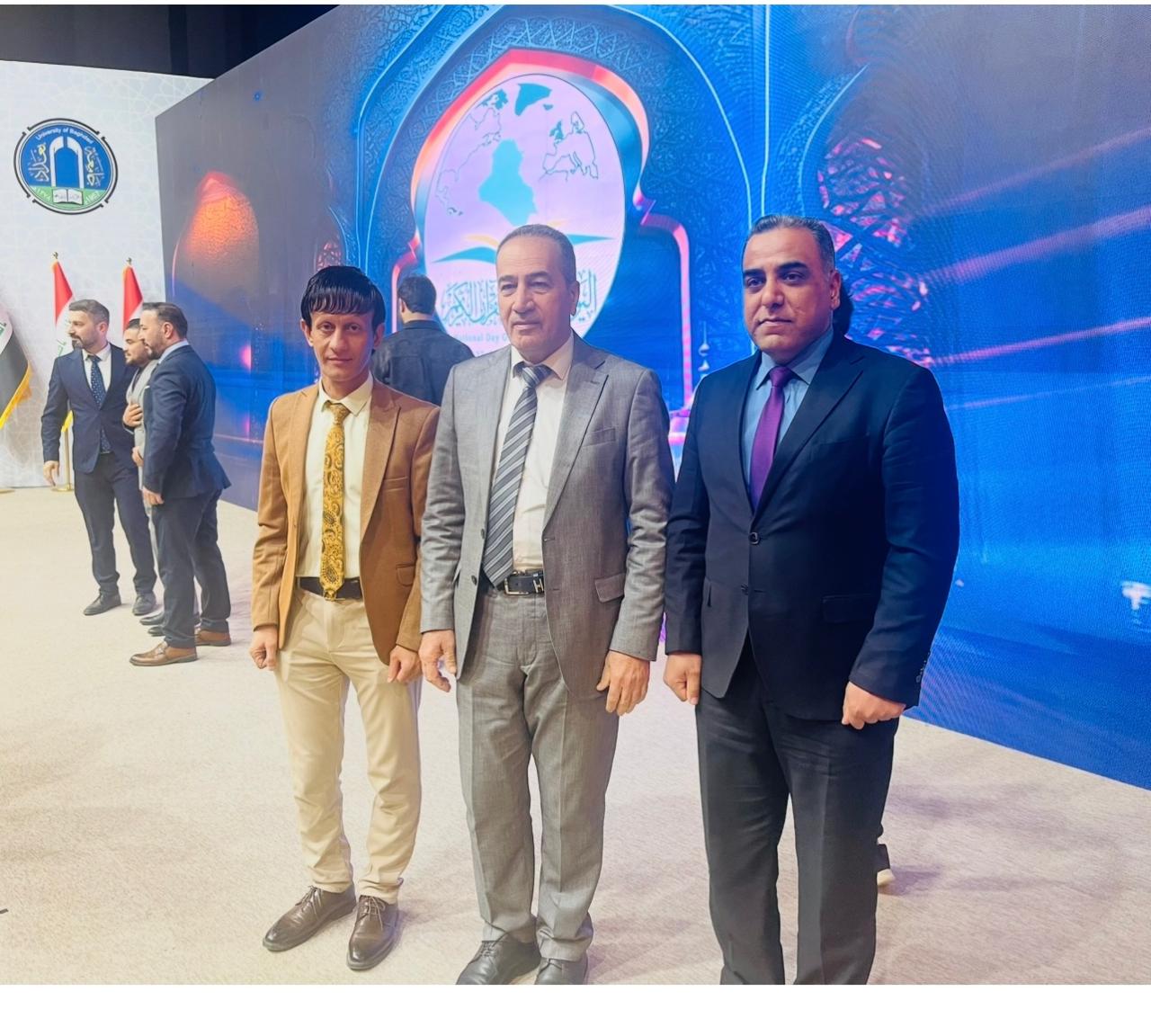 شارك الأستاذ الدكتور نهاد علي شفيق، عميد كلية التربية طوز خورماتو، يرافقه كلٌّ من الدكتور وعد دليان أنور والدكتور إبراهيم علي سليمان، في الحفل المركزي الذي أُقيم بمناسبة اليوم الوطني للقرآن الكريم، وذلك في قاعة الشهيد الحكيم بجامعة بغداد، بتاريخ اليوم السبت الموافق ٢٠٢٦/١/١٧.