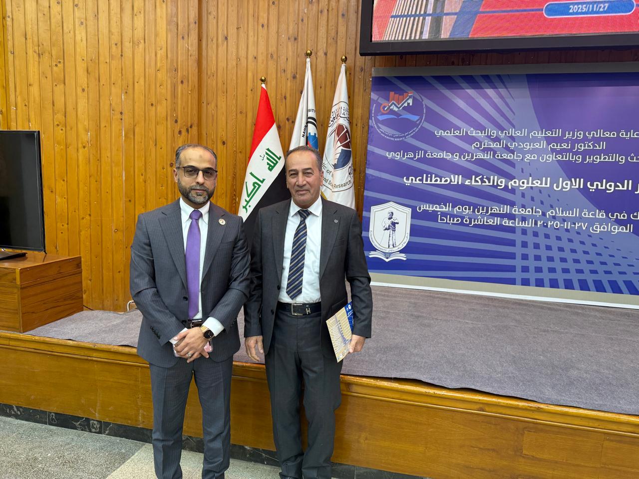 شارك الأستاذ الدكتور نهاد علي شفيق، عميد كلية التربية طوز خورماتو، في فعاليات المؤتمر الدولي الأول للعلوم والذكاء الاصطناعي الرقمي. أقيم المؤتمر برعاية معالي وزير التعليم العالي والبحث العلمي، الدكتور نعيم العبودي المحترم، ونظمته دائرة البحث والتطوير بالتعاون مع جامعة النهرين وجامعة الزهراوي. عُقد المؤتمر في قاعة السلام بجامعة النهرين، يوم الخميس الموافق 2025/11/27، في تمام الساعة العاشرة صباحاً. تؤكد مشاركة عمادة الكلية في هذا المحفل العلمي المرموق إيمانها الراسخ بضرورة مواكبة التحول الرقمي وتطبيق أحدث المتطلبات العلمية في مجالات العلوم والذكاء الاصطناعي، وتضع الكلية نفسها في طليعة المؤسسات التعليمية الداعمة للابتكار والمعرفة، من خلال تبادل الخبرات وعقد الشراكات العلمية مع الجامعات العراقية الرصينة.